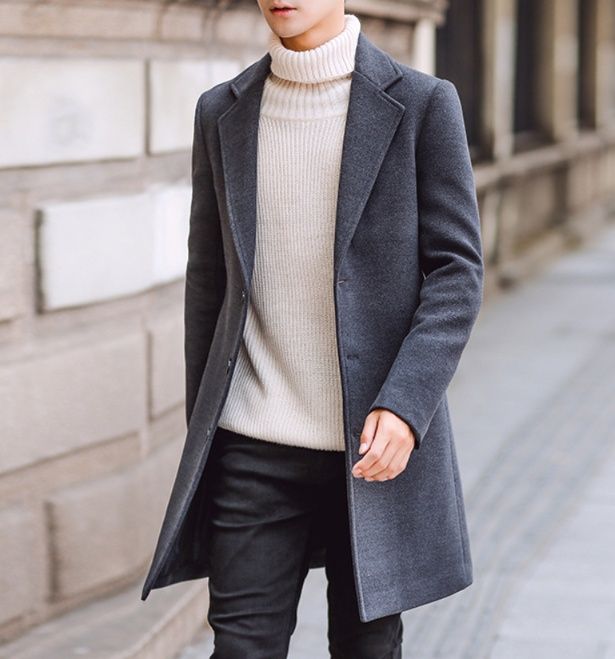 タートルネックニットとの組み合わせは、ビジネスからプライベートまで幅広い飲み会シーンに対応できる万能コーディネートです。